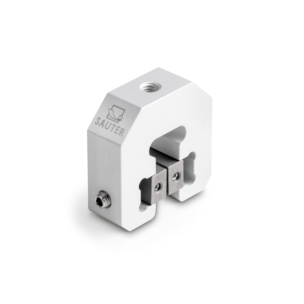 Solidna aluminiowa obudowa gwarantuje trwałość, a szczęki z uchwytem piramidowym (15×10 mm) zapewniają pewny chwyt badanych elementów. Gwintowane pręty z gniazdem sześciokątnym umożliwiają bezpieczne mocowanie próbek przy użyciu standardowych narzędzi, co pozwala dostosować zacisk do indywidualnych wymagań użytkownika i warunków pracy – zarówno w połączeniu z miernikami siły SAUTER, jak i stanowiskami testowymi.