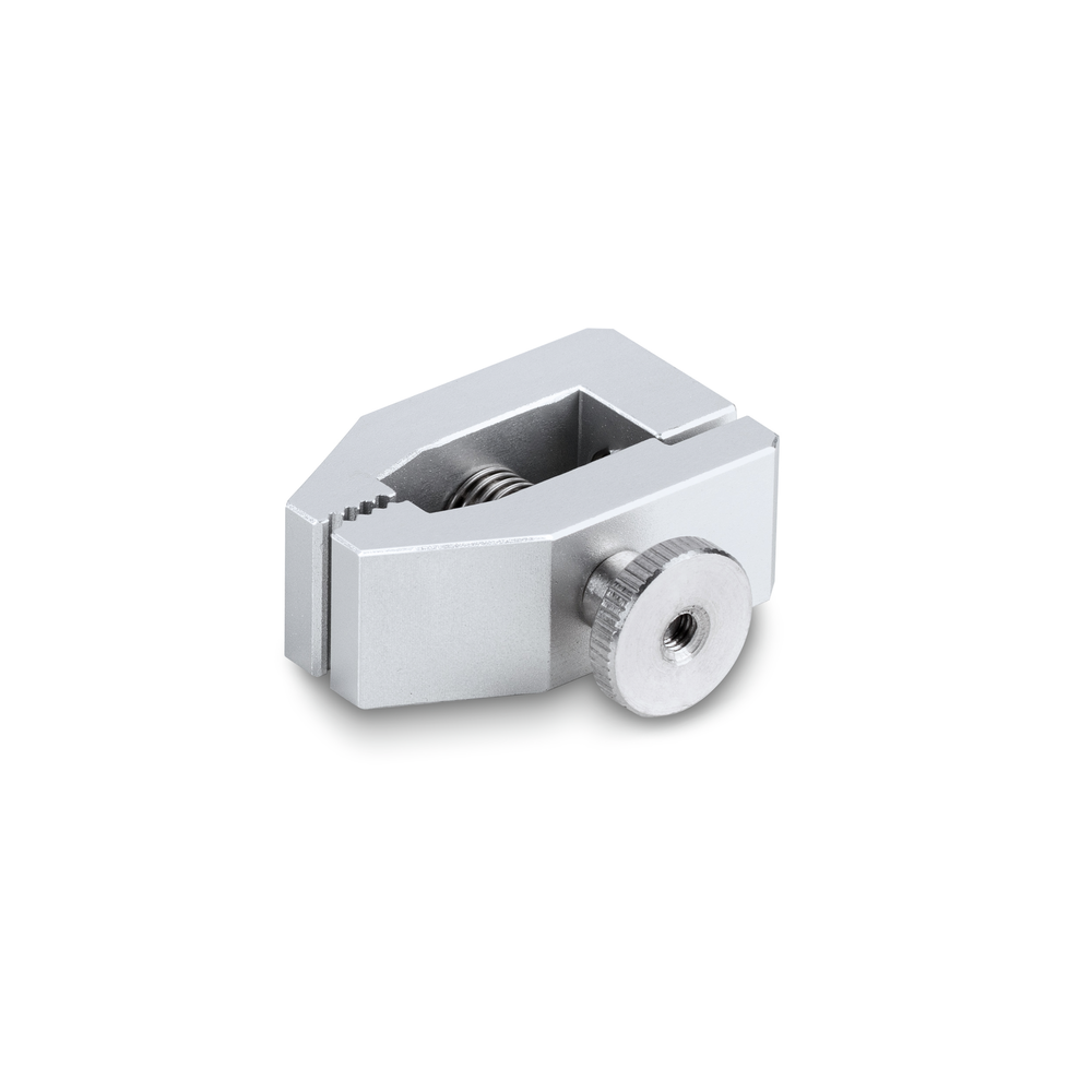 Konstrukcja z lekkiego, ale wytrzymałego aluminium zapewnia długą żywotność i odporność na uszkodzenia mechaniczne. Łatwa obsługa bez użycia narzędzi – otwieranie i zamykanie szczęk odbywa się za pomocą wygodnego pokrętła umieszczonego w górnej części zacisku. Możliwość wstępnego ustawienia rozwarcia szczęk dzięki śrubom regulacyjnym oraz sprężynom naciągowym pozwala na szybkie dopasowanie do różnych zastosowań.
