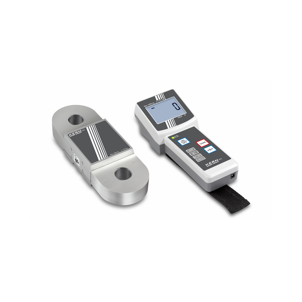 - Urządzenie wyświetlające ze zintegrowanym modułem radiowym, które użytkownik może nosić przy sobie dzięki wygodnemu paskowi na rękę, standardowo. W ten sposób dane dotyczące ważenia mogą być zawsze odczytane z urządzenia wyświetlającego przez użytkownika, nawet gdy użytkownik znajduje się daleko od odbiornika obciążenia (siłomierza) lub w warunkach słabego oświetlenia. Zasięg do 20 m. Można wybrać wszystkie funkcje.