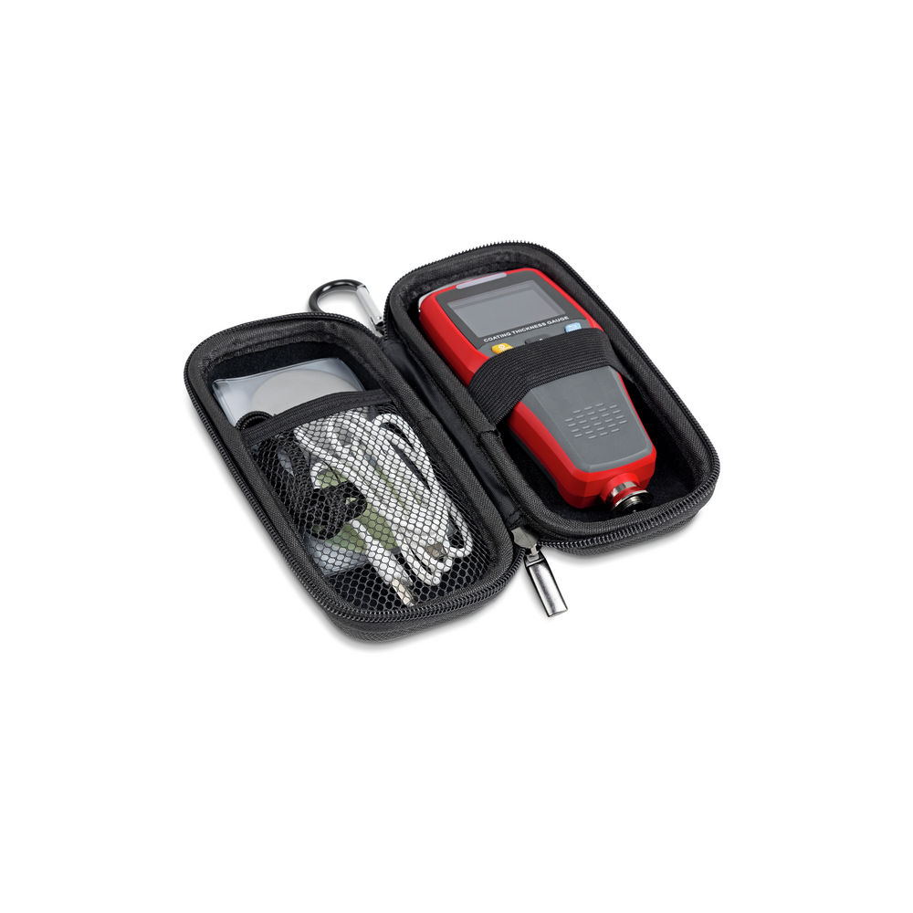 | Dostarczenie urządzenia w funkcjonalnym futerale pomoże zachować organizację. | Zakres pomiaru do 2000 µm, czujnik o niskim zużyciu dzięki najnowocześniejszym technologiom. Czujnik grubości powłoki typu FE, NFE. |