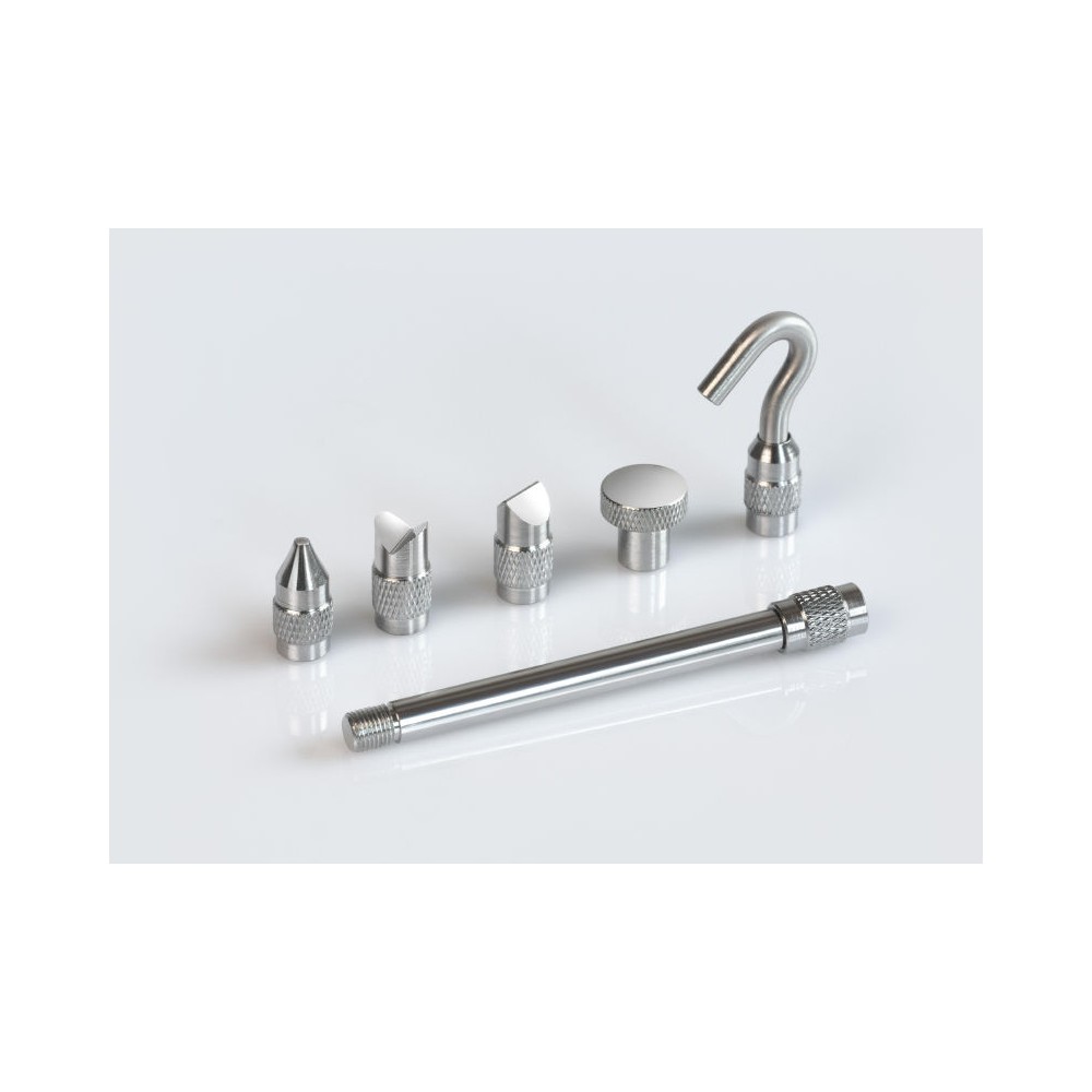 Standardowe końcówki + pręt przedłużający 90 mm w zestawie.