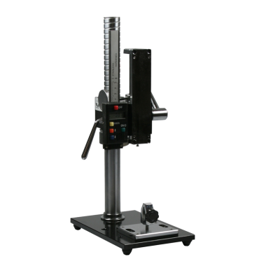 Ręczne stanowisko testowe z korbą do bardzo dokładnego pomiaru siły rozciągającej i ściskającej, z pomiarem długości.