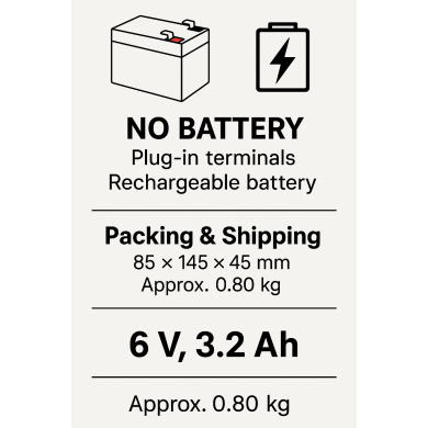 💧 Ochrona przed kurzem i zachlapaniem wodą – IP65 Obudowa spełnia normę ochrony IP65, zapewniając odporność na pył i wodę wyłącznie przy zasilaniu z akumulatora, lub baterii