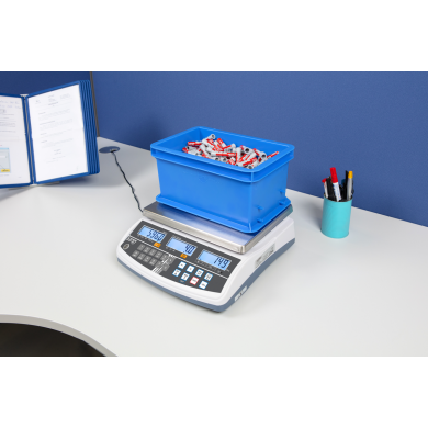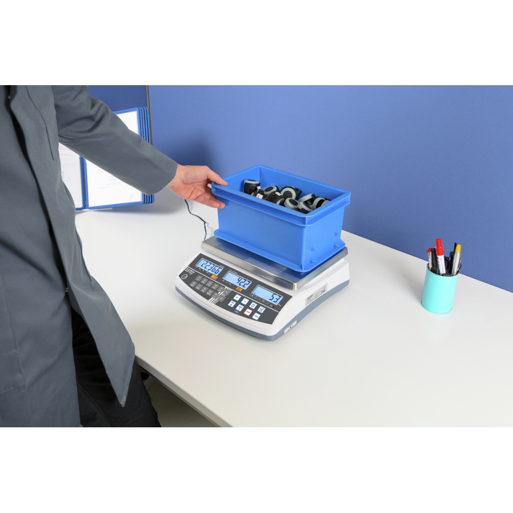 Obsługa jest intuicyjna dzięki klawiaturze numerycznej, umożliwiającej wprowadzanie wymaganej ilości referencyjnej lub znanej masy referencyjnej. Trzy oddzielne wyświetlacze prezentują jednocześnie masę całkowitą, wagę referencyjną oraz liczbę sztuk, co znacznie przyspiesza pracę.