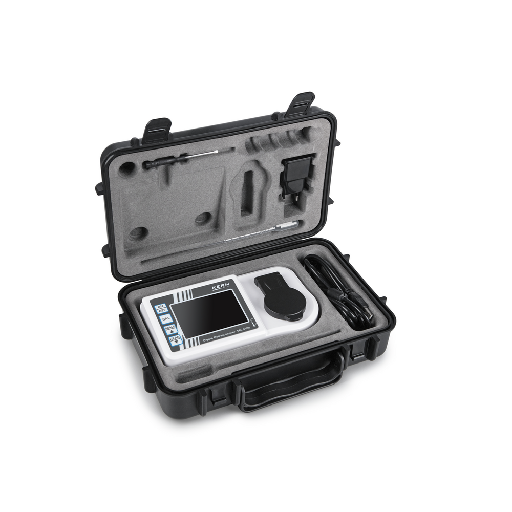 KERN ORL 94AL to precyzyjny, stacjonarny refraktometr cyfrowy, zaprojektowany z myślą o zastosowaniach w przemyśle alkoholowym. Urządzenie wyposażone jest w 10 fabrycznie zainstalowanych skal, w tym Brix, współczynnik załamania światła oraz specjalistyczne skale do pomiaru piwa i wina (Oechsle, Plato, KMW, objętość alkoholu i inne).