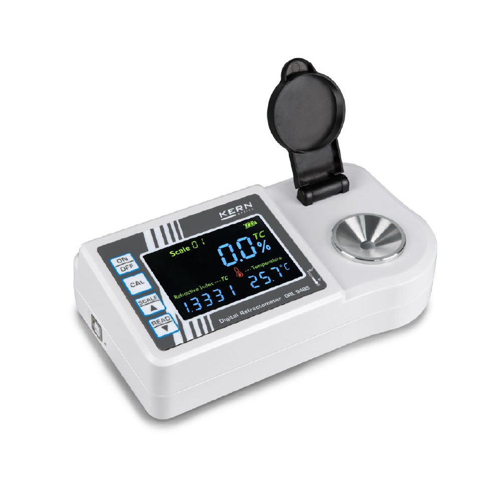 KERN ORL 94LM to precyzyjny, cyfrowy refraktometr biurkowy, zaprojektowany z myślą o szybkim i wygodnym pomiarze w branży spożywczej. Urządzenie wyposażone jest w fabrycznie zainstalowane skale do pomiaru współczynnika załamania światła oraz zawartości substancji rozpuszczonych, takich jak cukry i sól.