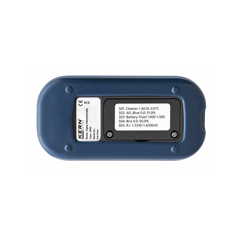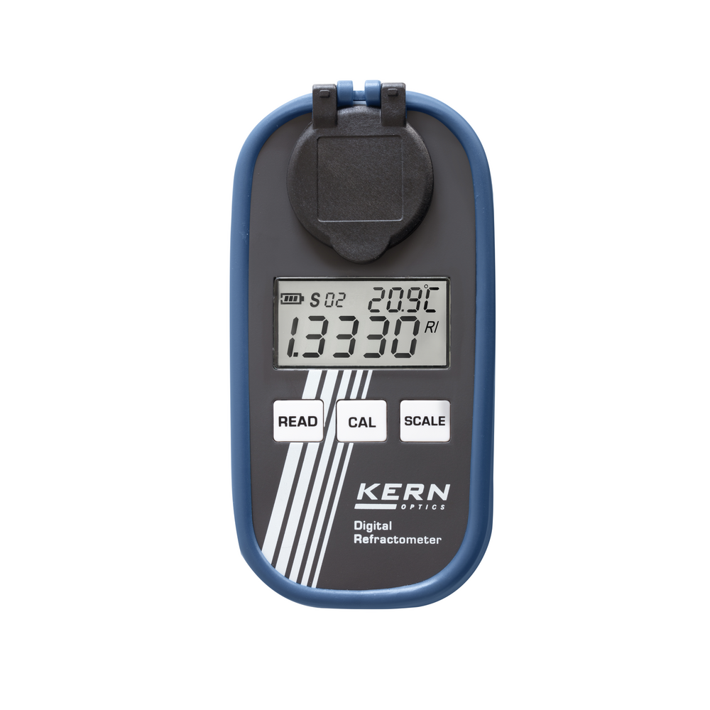 KERN ORM 2WN to cyfrowy refraktometr ręczny, szczególnie odpowiedni do pomiaru zawartości cukru w owocach. Urządzenie wskazuje przewidywaną zawartość alkoholu (°Alkohol) oraz pozwala określić stopień dojrzałości owoców, np. winogron. Alternatywnie wyświetlacz może zostać przełączony na skalę Brix.
