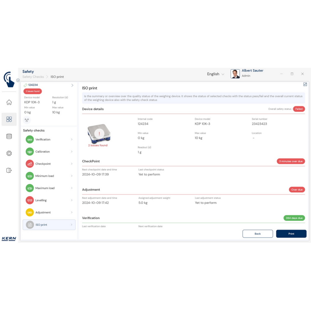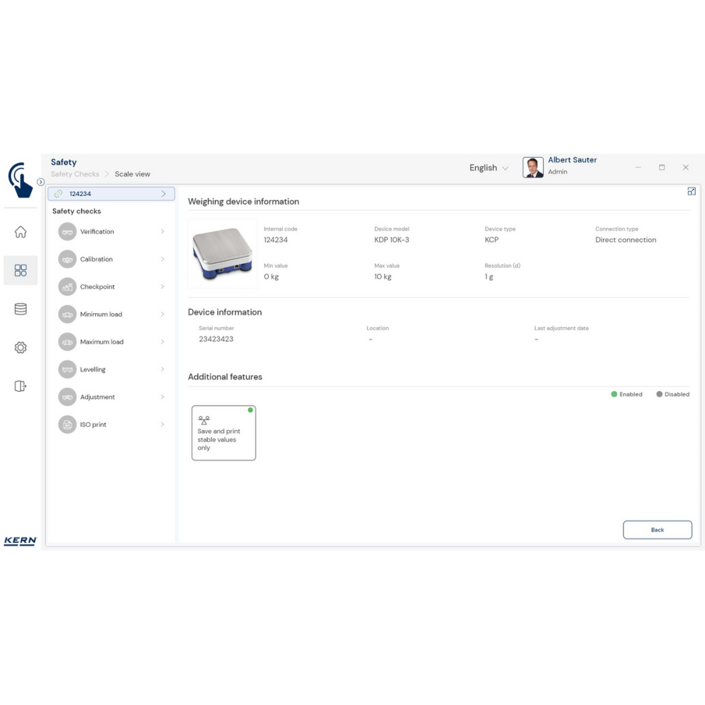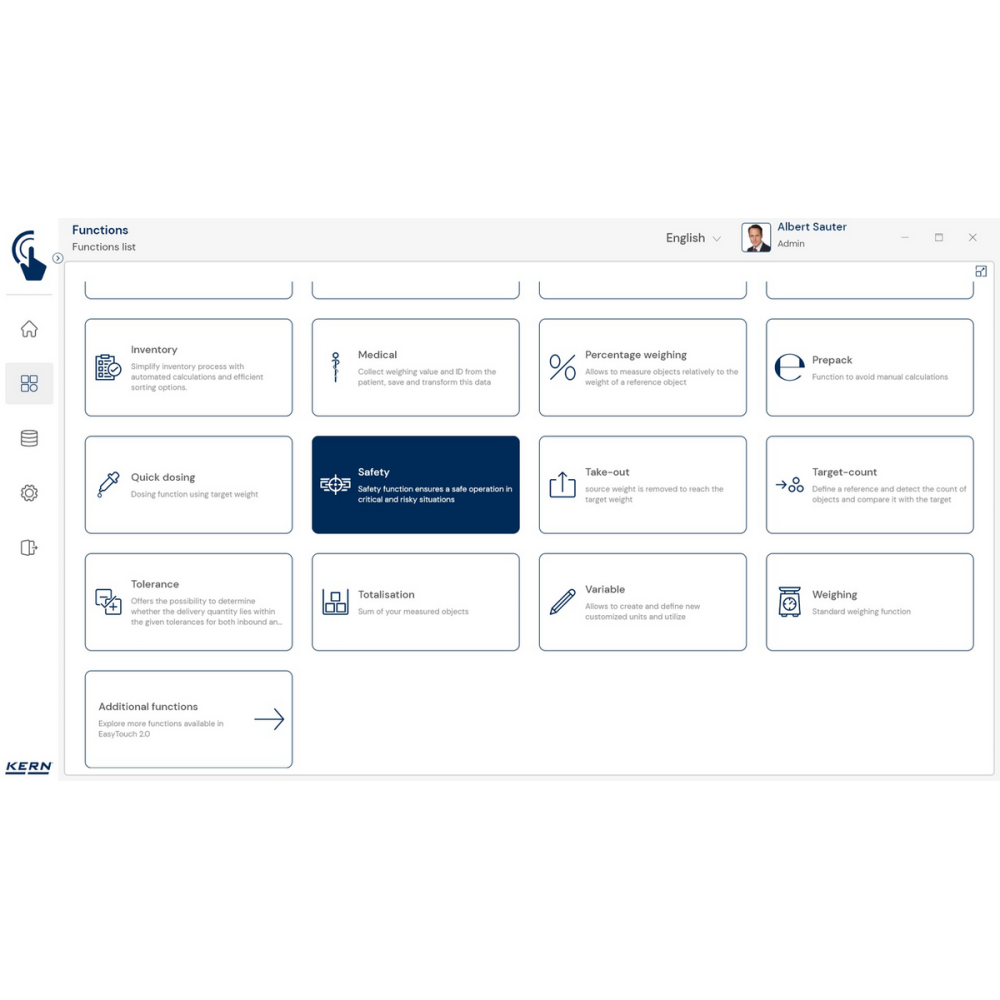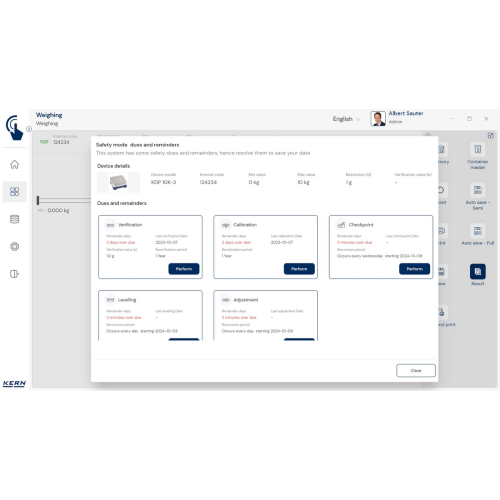 KERN EasyTouch SET‑11 Safety to zaawansowany moduł oprogramowania, który czuwa nad precyzją i bezpieczeństwem procesów ważenia.