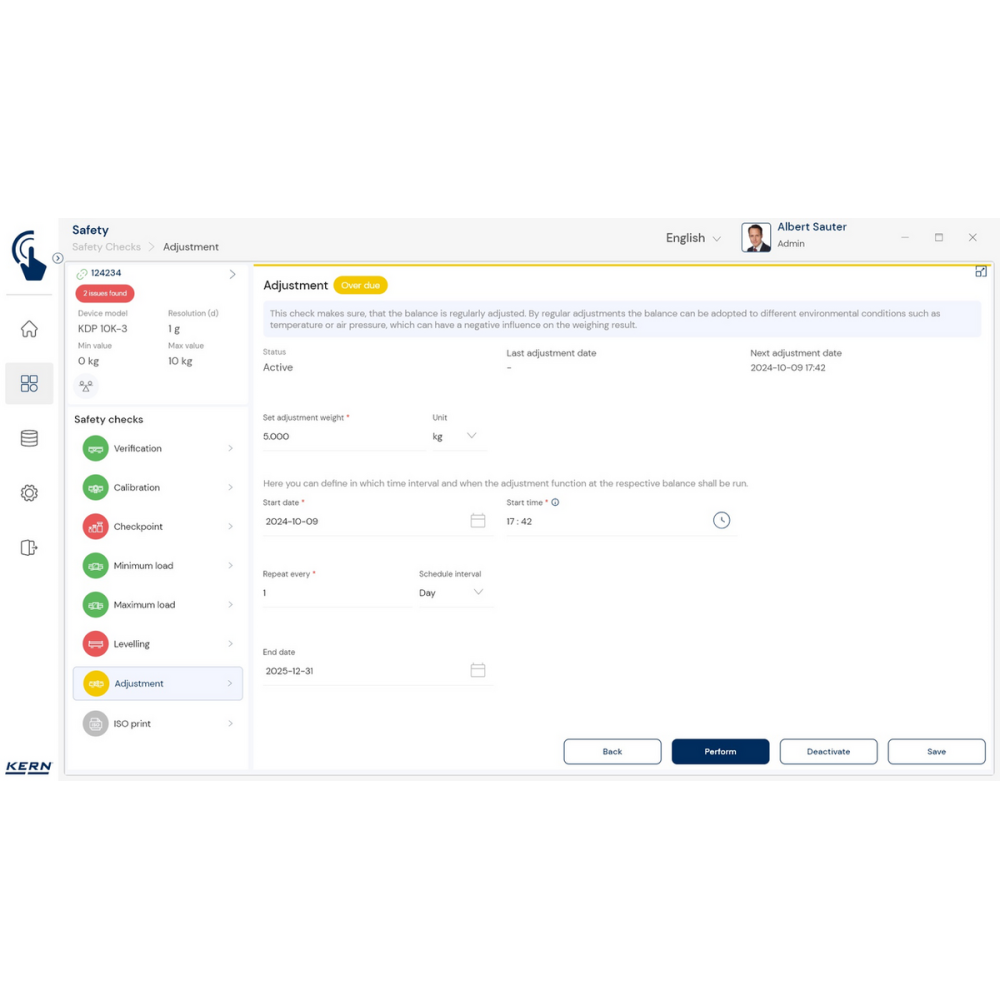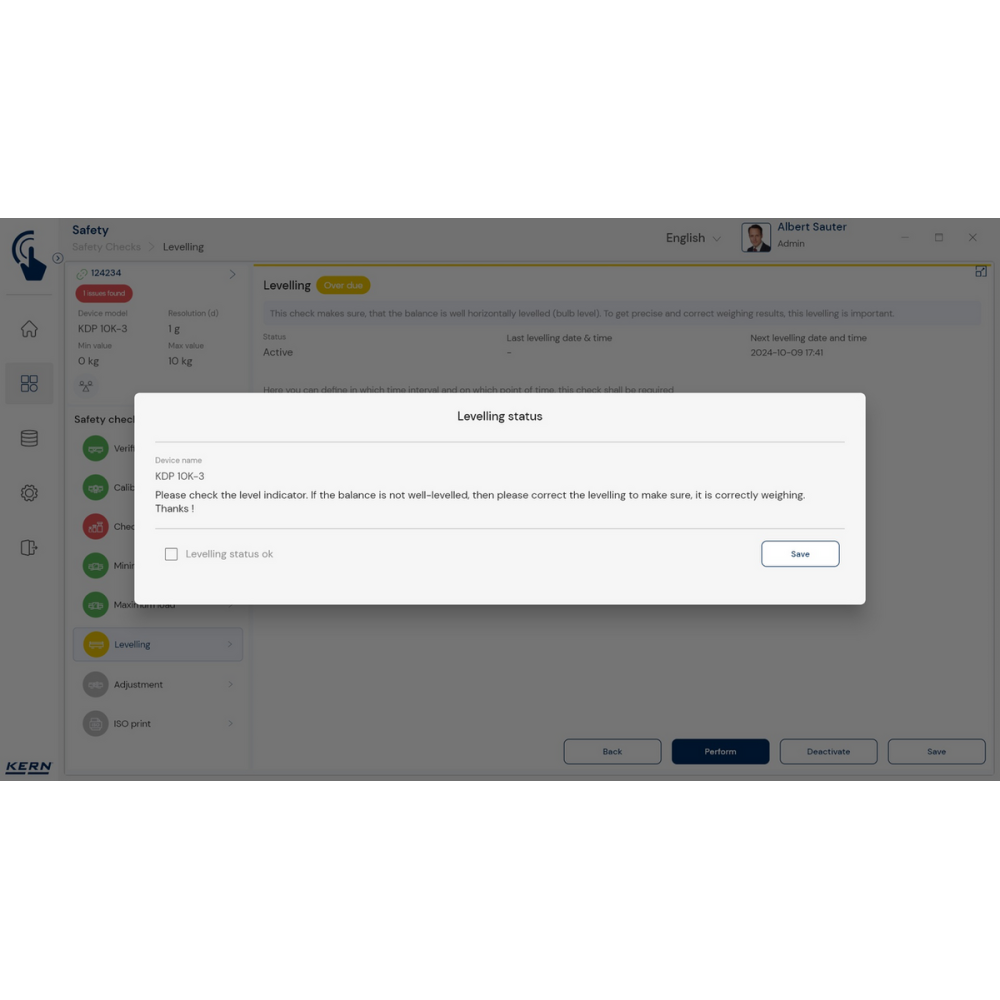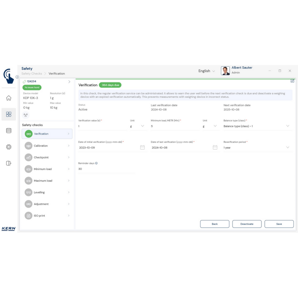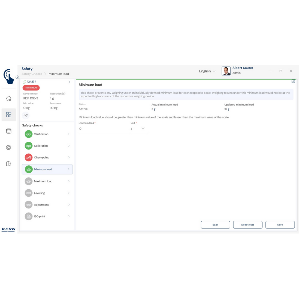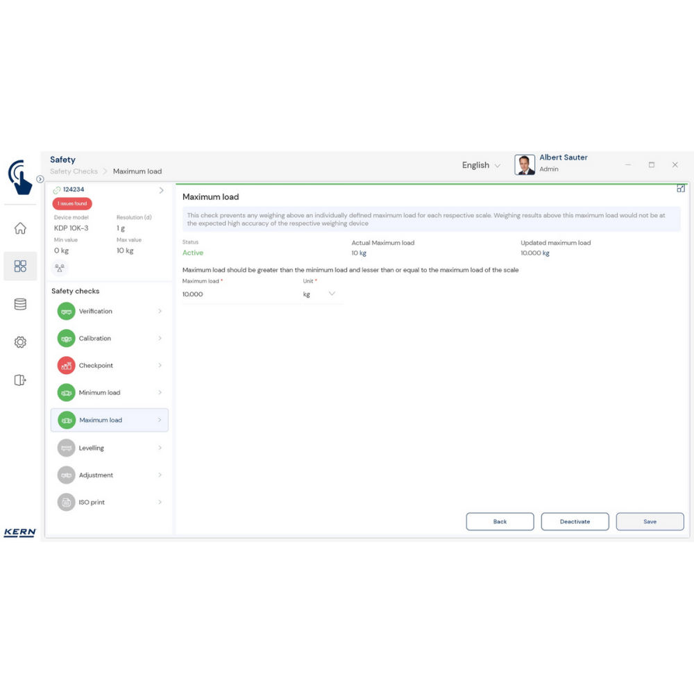 KERN EasyTouch SET‑11 Safety to zaawansowany moduł oprogramowania, który czuwa nad precyzją i bezpieczeństwem procesów ważenia.