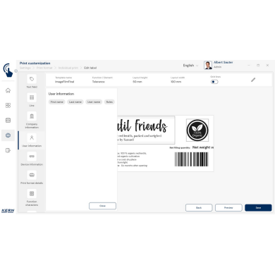 Moduł KERN EasyTouch SET-14 pozwala przenosić stworzone szablony między stanowiskami, co znacząco ułatwia pracę w firmach wielooddziałowych. Oferuje zaawansowane opcje formatowania czcionek i stylów, a także możliwość dodawania grafik, logo czy ikon.