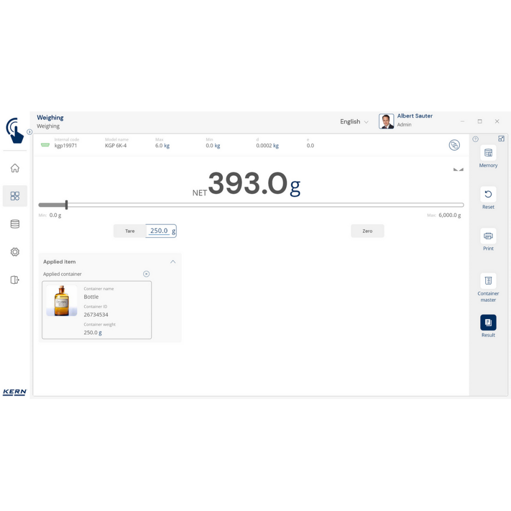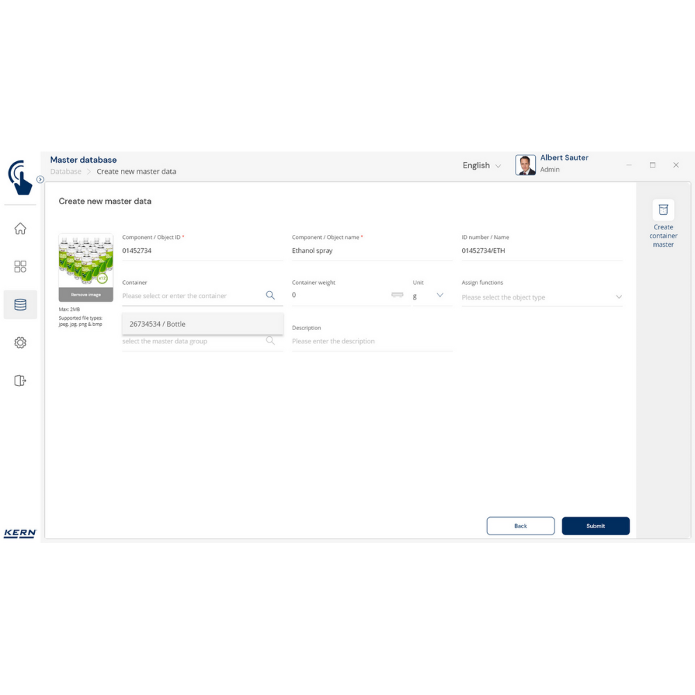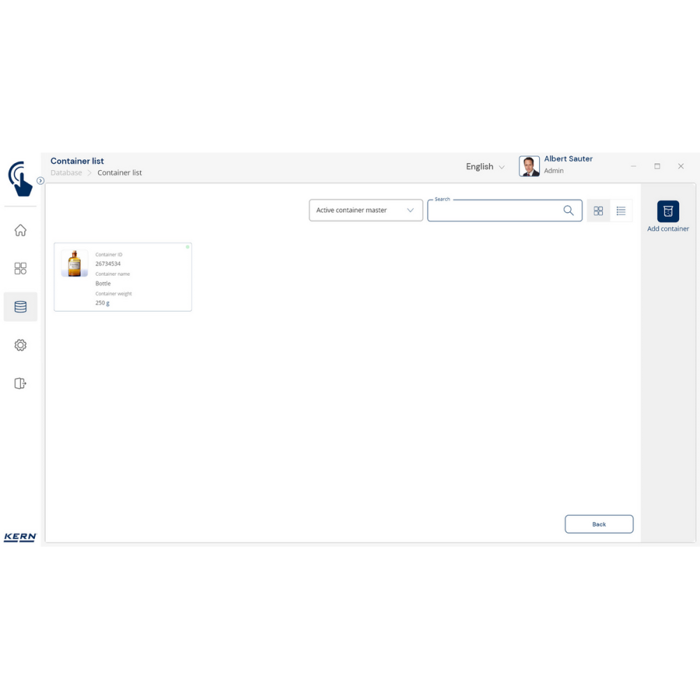 KERN EasyTouch SET‑18 – moduł Container Master do centralnego zarządzania tarami pojemników w systemach EasyTouch. Automatyczne aktualizacje wagi pojemnika, stałe przypisanie do produktów i szybka identyfikacja pojemników eliminują ryzyko błędów i przyspieszają proces ważenia.