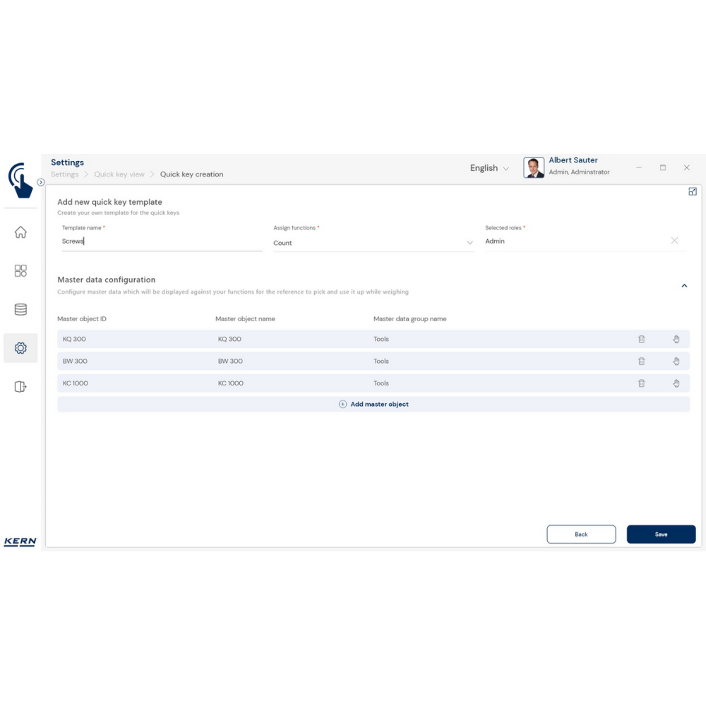 KERN EasyTouch SET-311 – moduł Quick Key do szybkiego wyboru danych w wagach KERN. Obsługa wielu użytkowników, integracja z wieloma wagami, komunikacja USB/Bluetooth/Ethernet/WiFi.