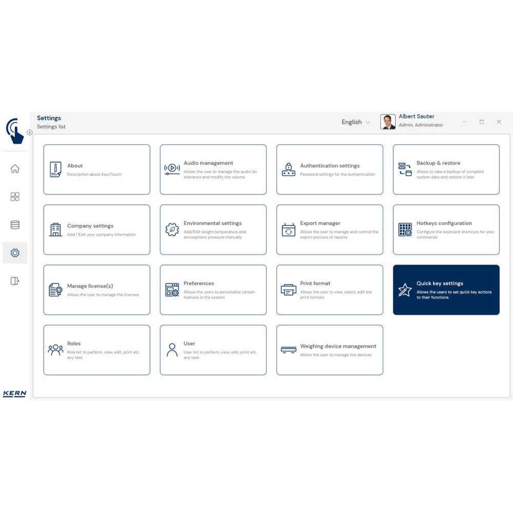 KERN EasyTouch SET-311 to moduł oprogramowania rozszerzający funkcjonalność systemu EasyTouch o klawisze szybkiego wyboru (Quick Keys), które pozwalają błyskawicznie wybierać obiekty danych głównych.