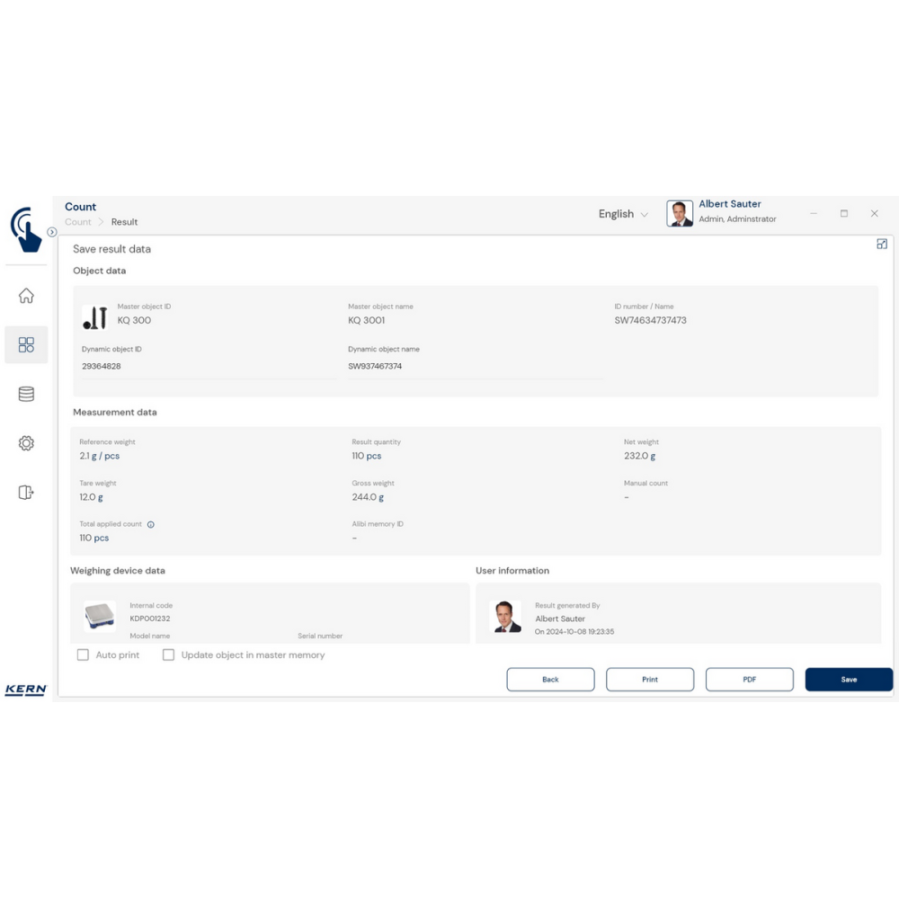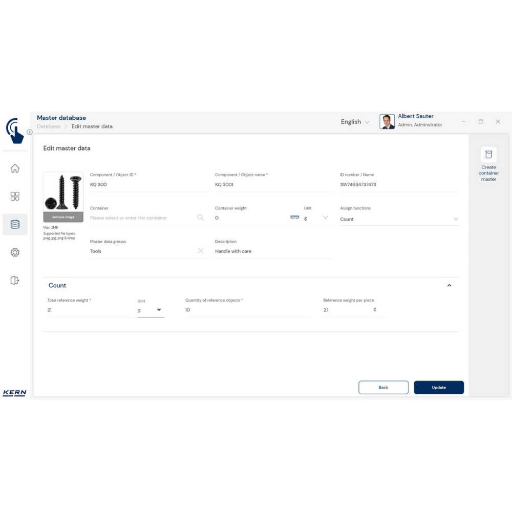 KERN EasyTouch SET-32 – moduł liczenia sztuk z automatyczną optymalizacją wagi referencyjnej, centralną bazą danych i obsługą wielu wag.