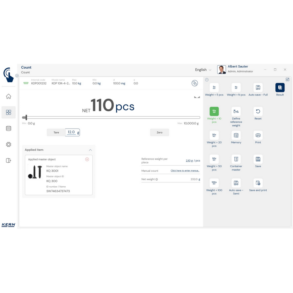 KERN EasyTouch SET-32 to zaawansowany moduł oprogramowania do liczenia sztuk, który znacząco usprawnia procesy ważenia i inwentaryzacji.
