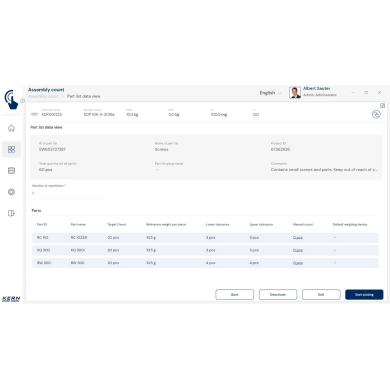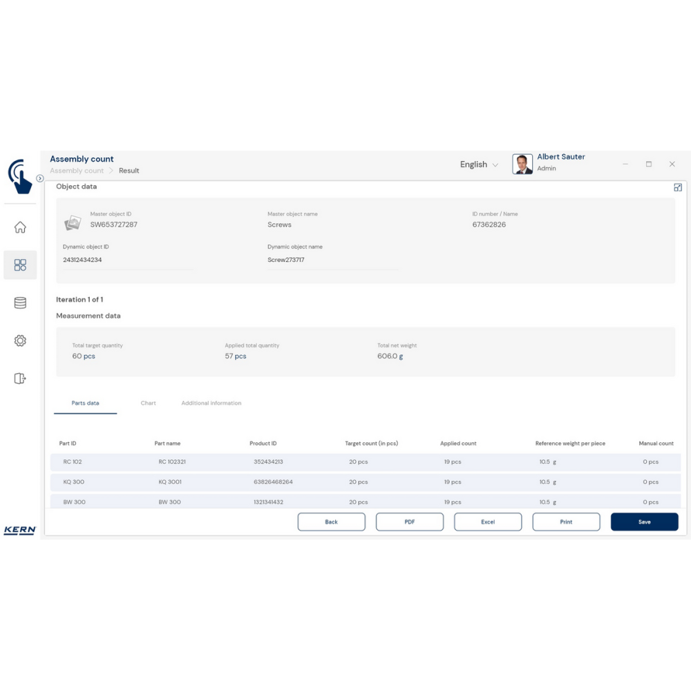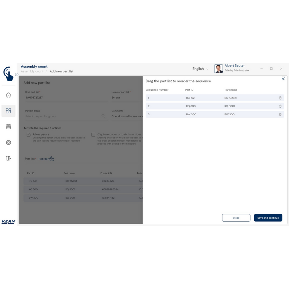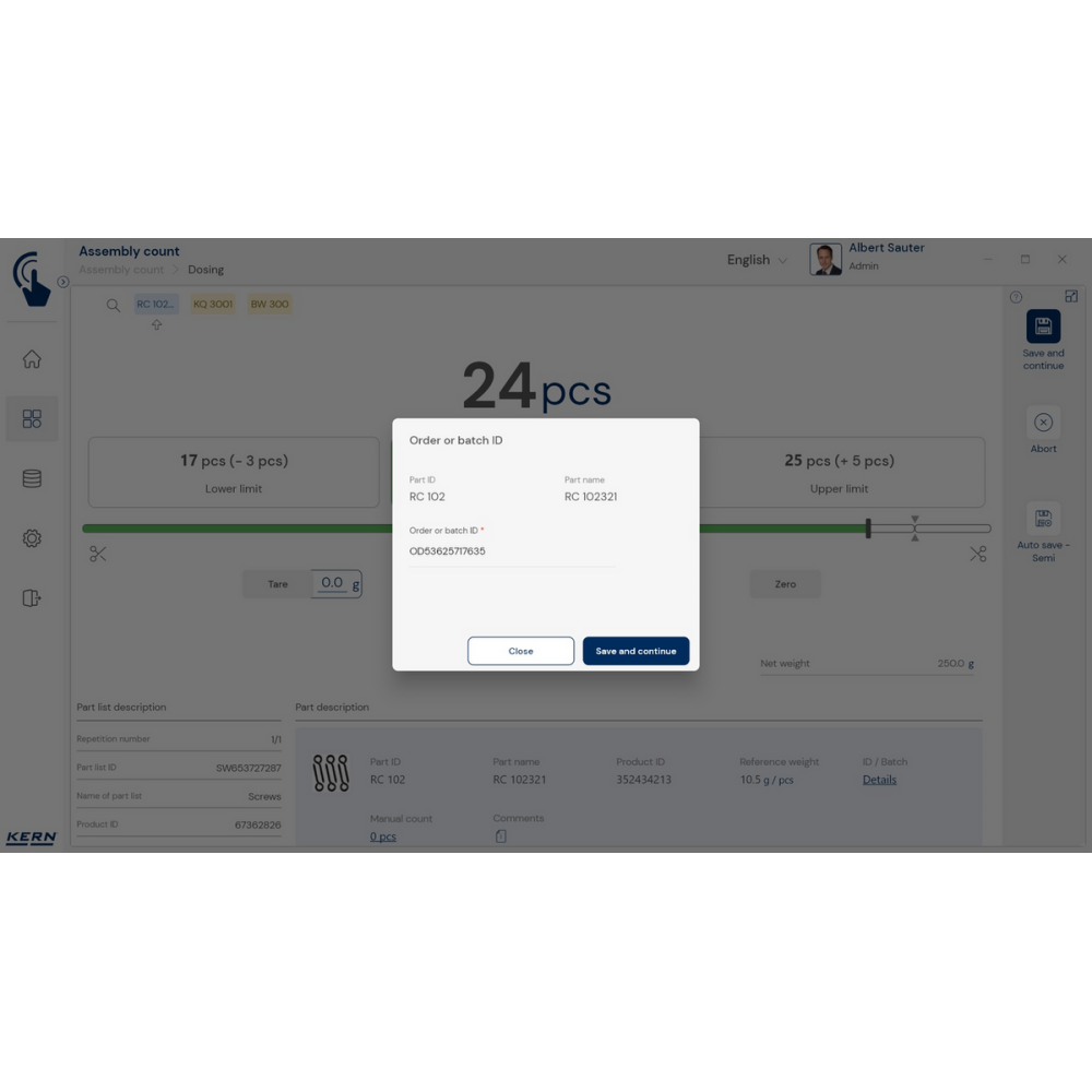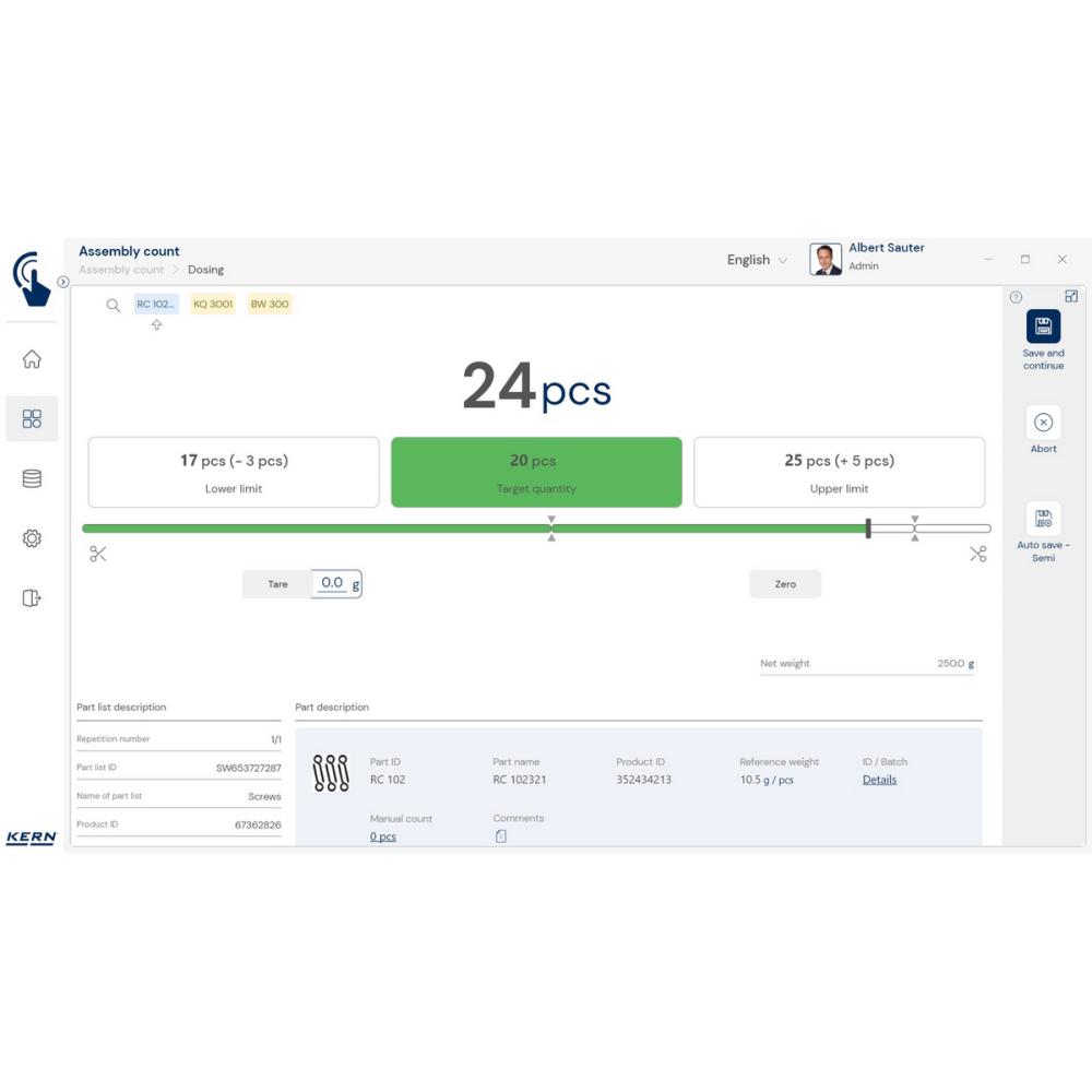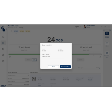 KERN EasyTouch SET-35 – moduł Assembly Count do szybkiej i bezbłędnej kompletacji zamówień z kontrolą ilości, obsługą kodów kreskowych i pełną dokumentacją procesu.