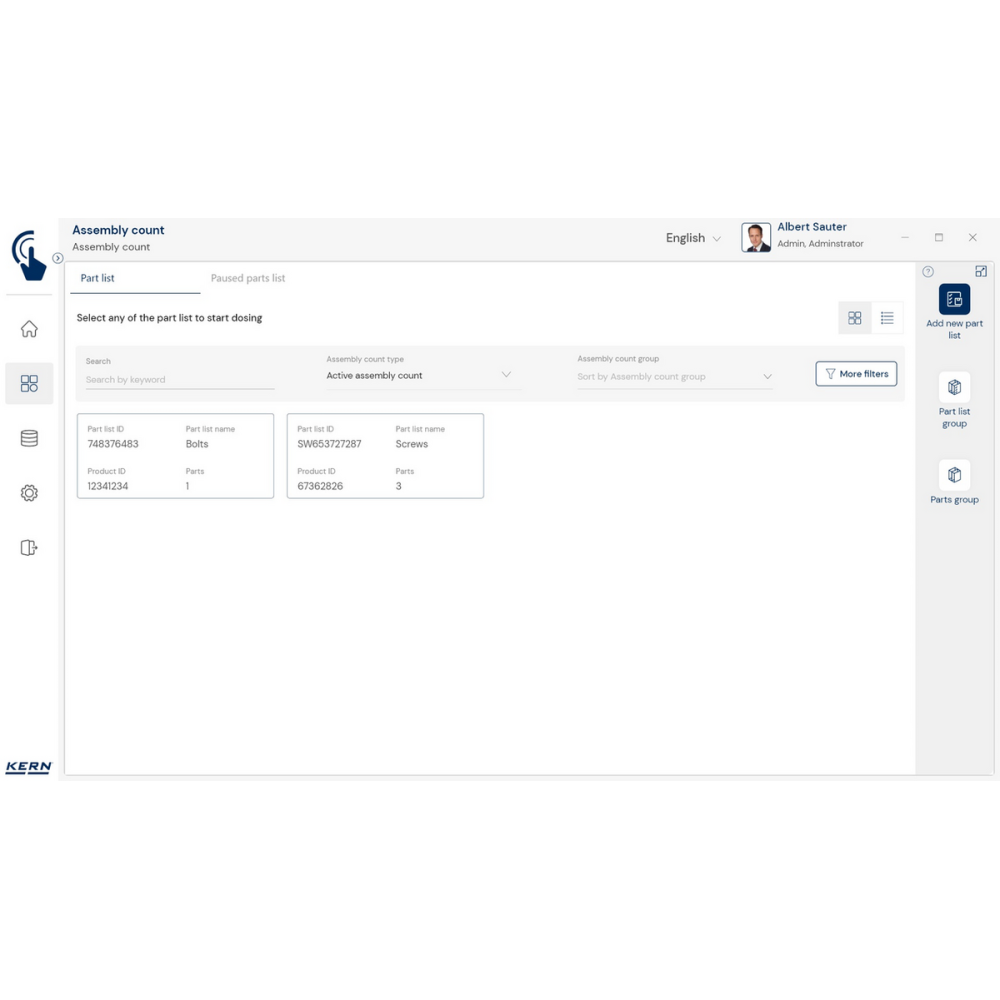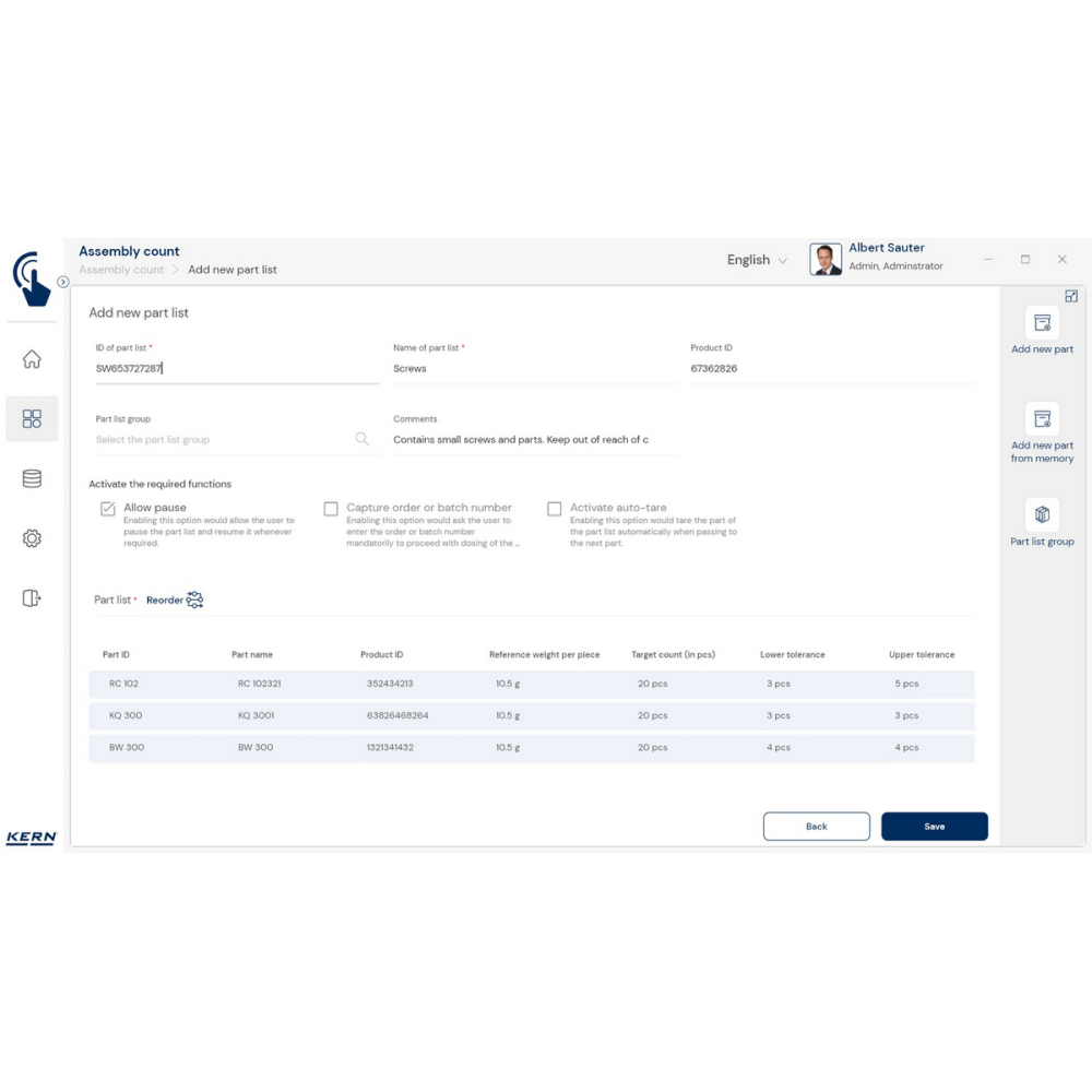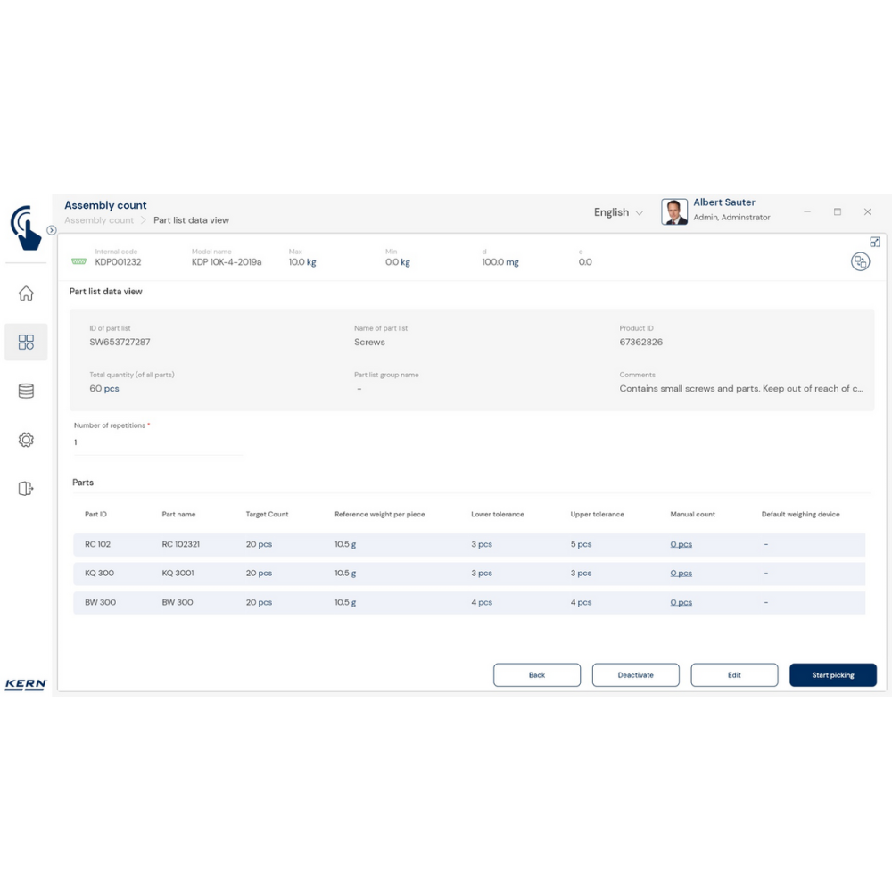 KERN EasyTouch SET-35 to zaawansowany moduł oprogramowania, który usprawnia proces kompletacji zamówień i zestawów części.