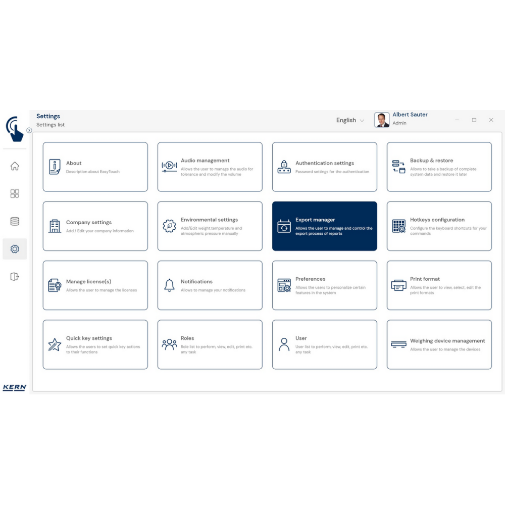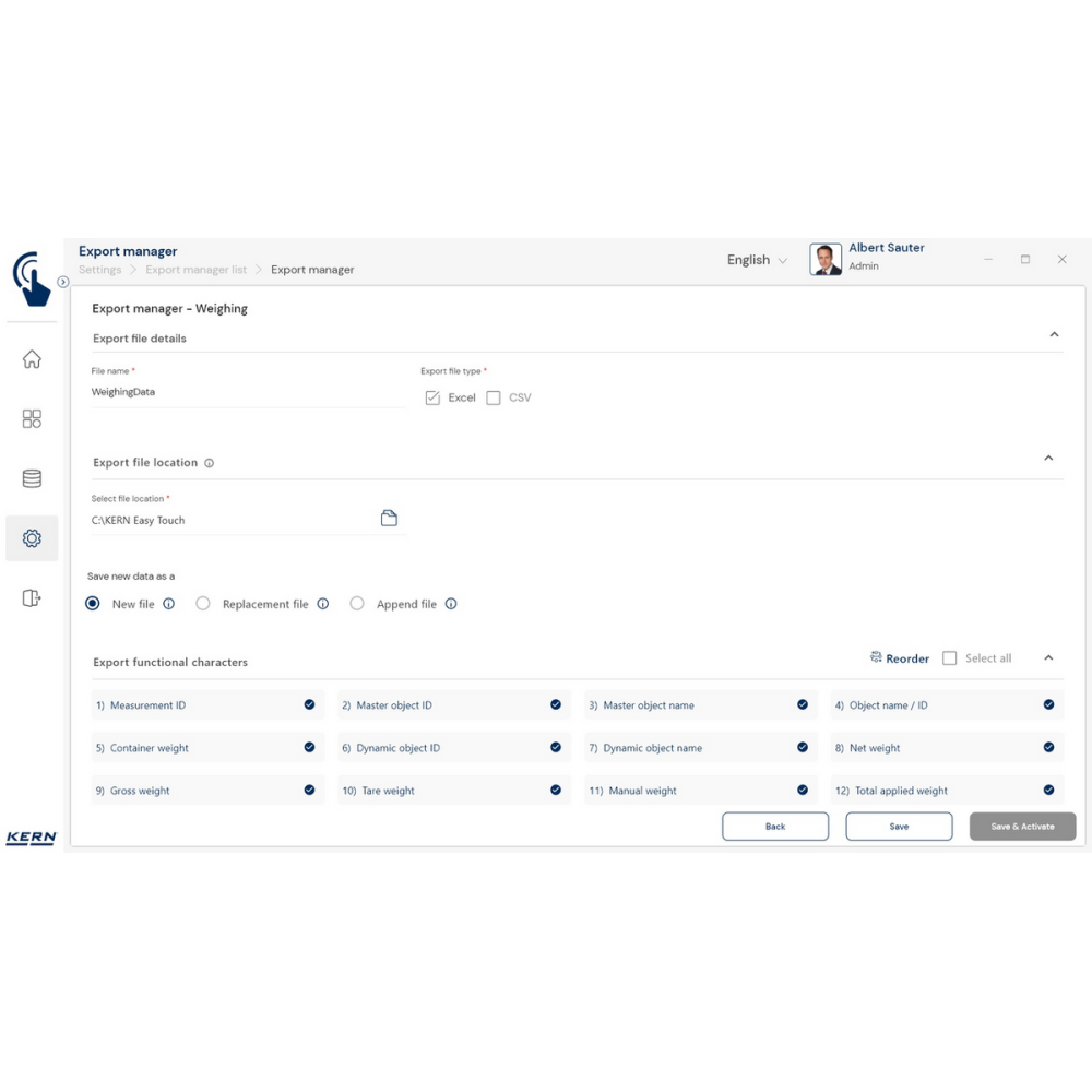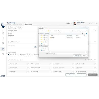 KERN EasyTouch SET-37 to moduł oprogramowania Export Manager, który automatyzuje proces eksportu danych z wag KERN EasyTouch.
