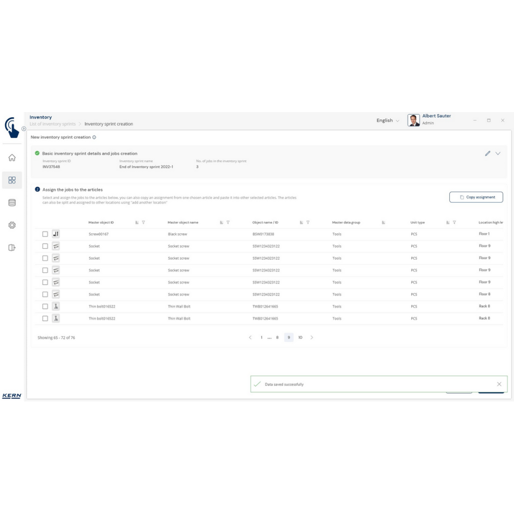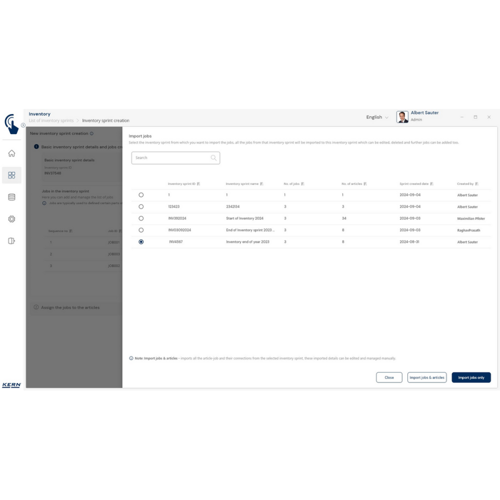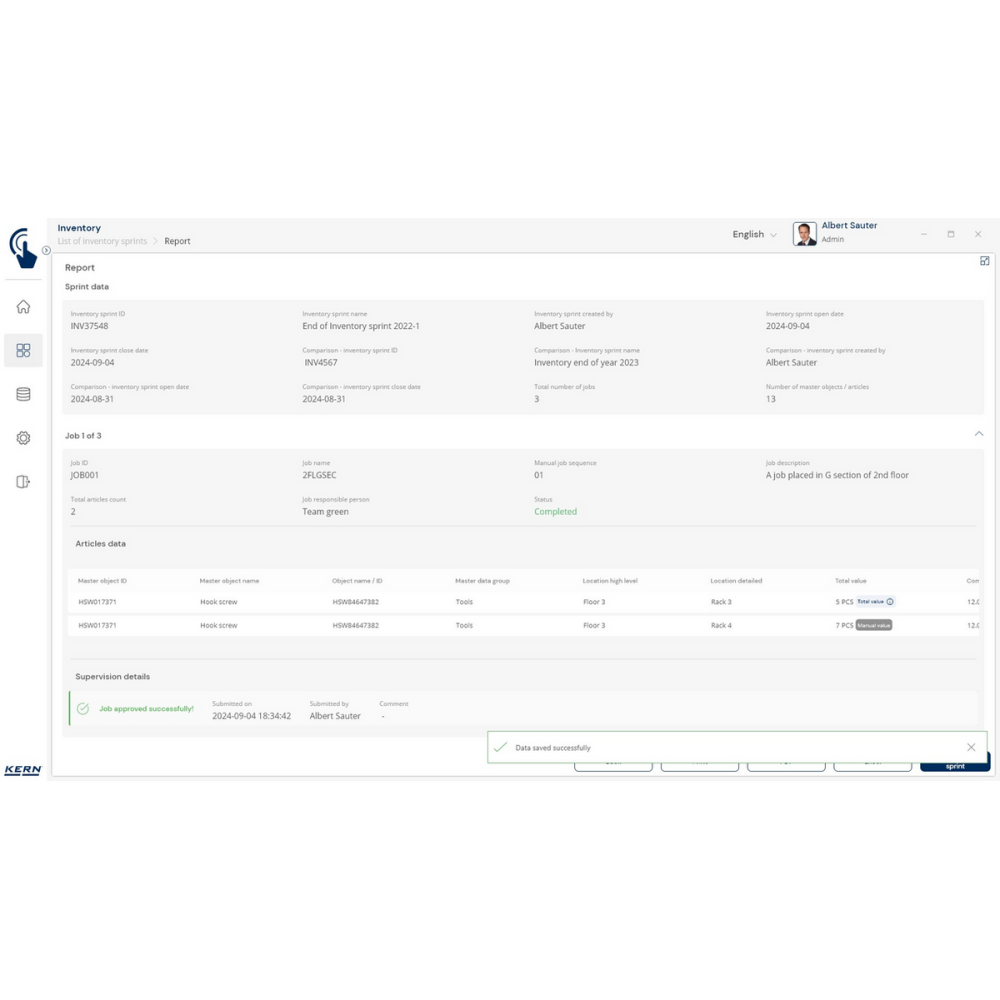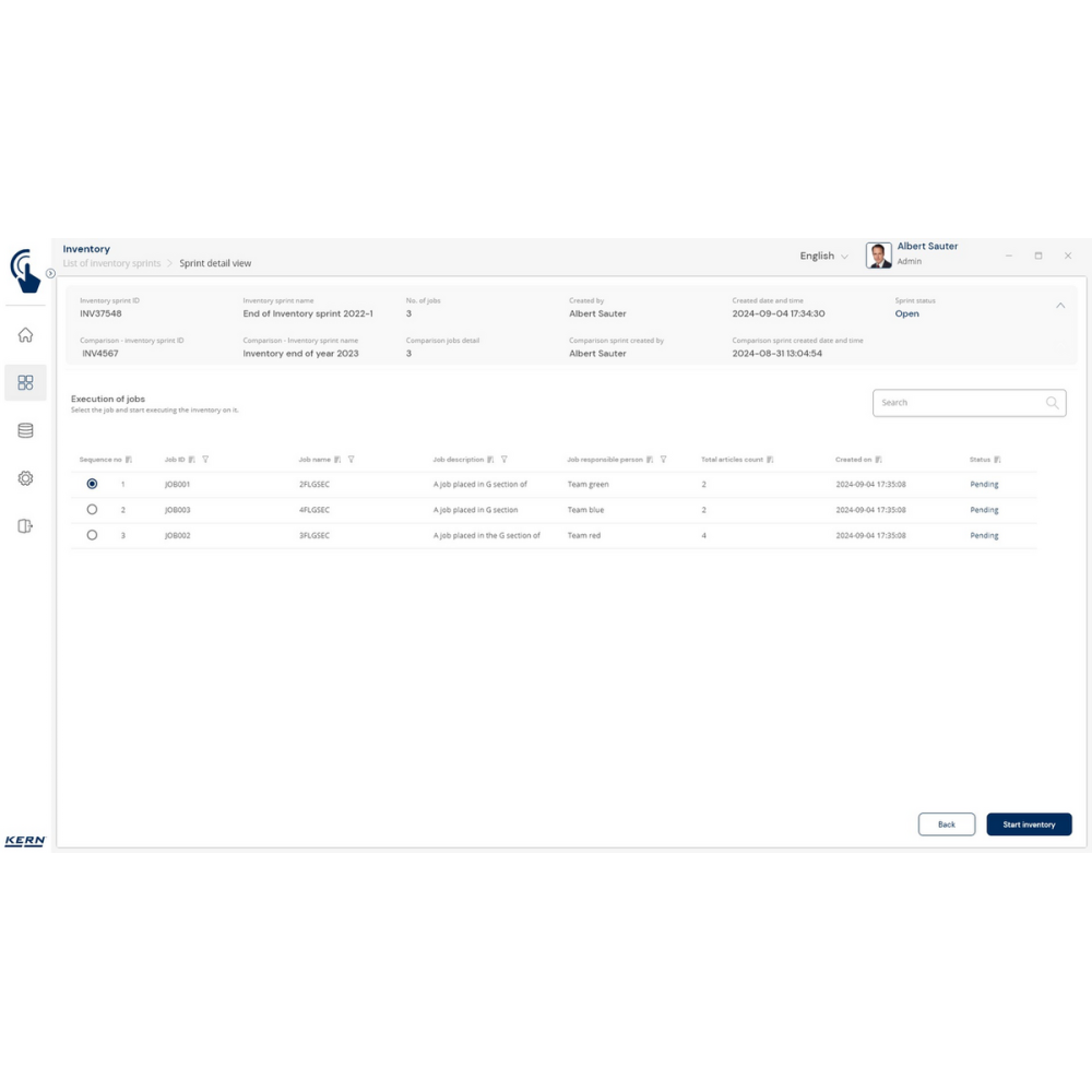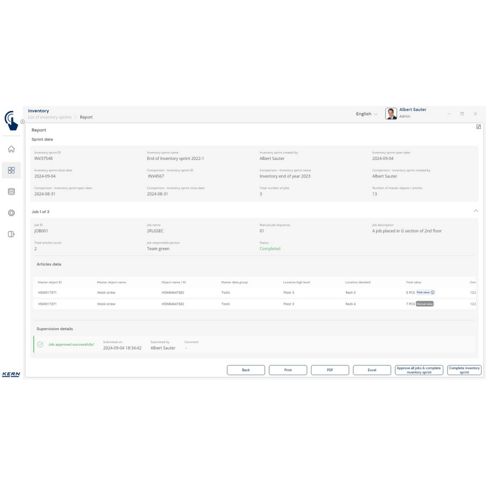 KERN EasyTouch SET-52 Inventory to moduł i baza danych, które umożliwiają szybkie, precyzyjne i bezbłędne przeprowadzanie inwentaryzacji. Wystarczy skan kodu kreskowego i ważenie produktu, a system automatycznie policzy sztuki, zapisze wyniki i przygotuje kompletną listę towarów.