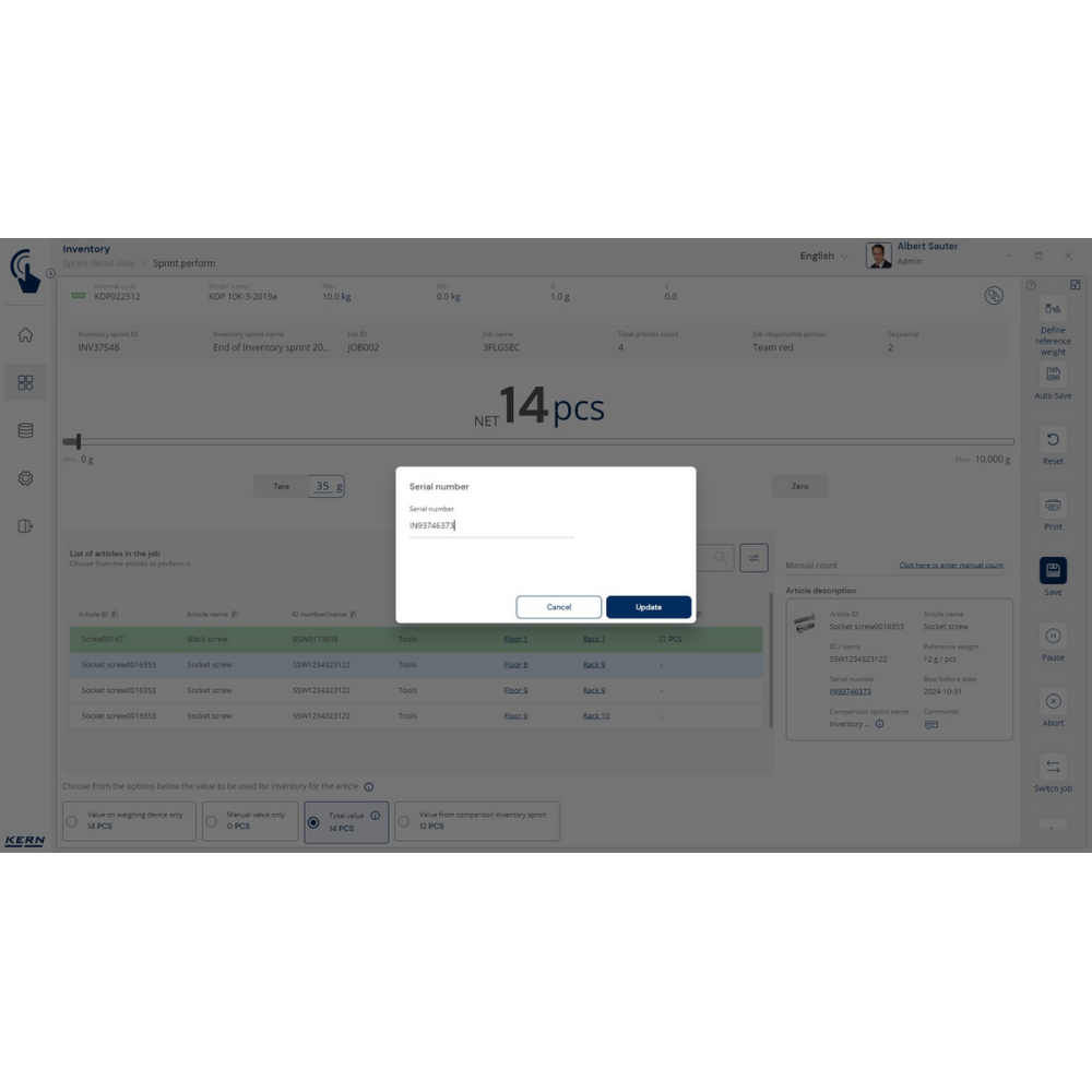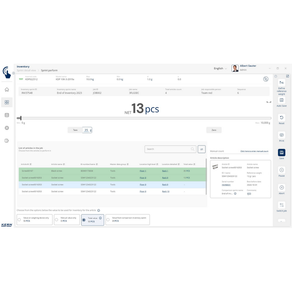 KERN EasyTouch SET-52 – szybki i prosty moduł inwentaryzacji z funkcją skanowania kodów kreskowych, automatycznego liczenia towarów i integracji z ERP.