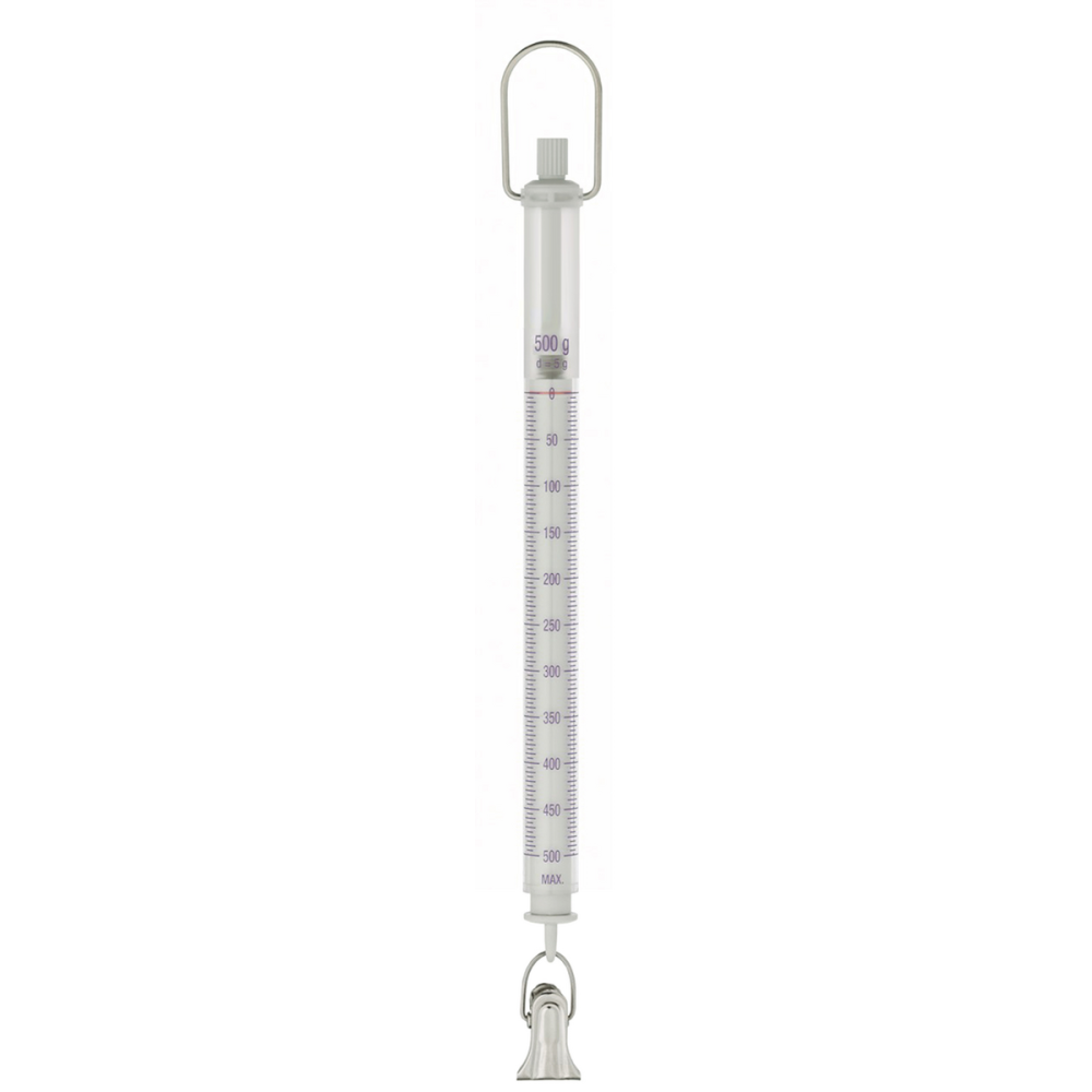 Dzięki podwójnej skali możliwy jest szybki lub precyzyjny odczyt wyników, a rotacyjna rurka wewnętrzna ułatwia obserwację wskazań z każdej strony. Wbudowana śruba tarująca pozwala na dokładne wyzerowanie pomiaru, co zwiększa jego wiarygodność. Standardowy uchwyt można łatwo wymienić na inny, dostosowując wagę do różnych typów zawieszanych przedmiotów.