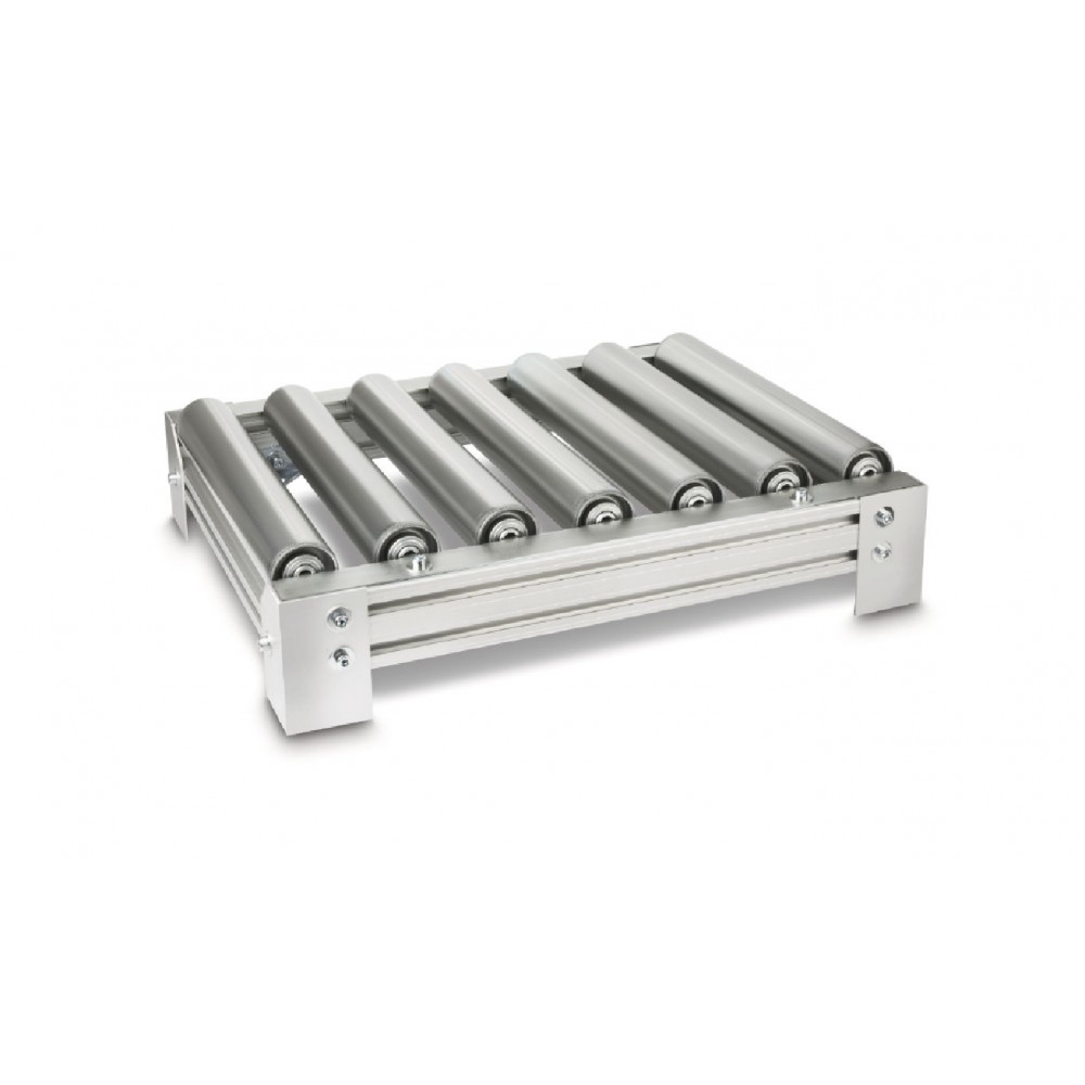 Idealna kombinacja do określania masy na przenośnikach: wysokiej jakości przenośniki rolkowe z łożyskami kulkowymi w połączeniu z wagami platformowymi KERN (np. KERN IFB, KERN IFS, KERN IXS, KERN KFP-V40, KERN KXP-V20LM lub KERN SXS)