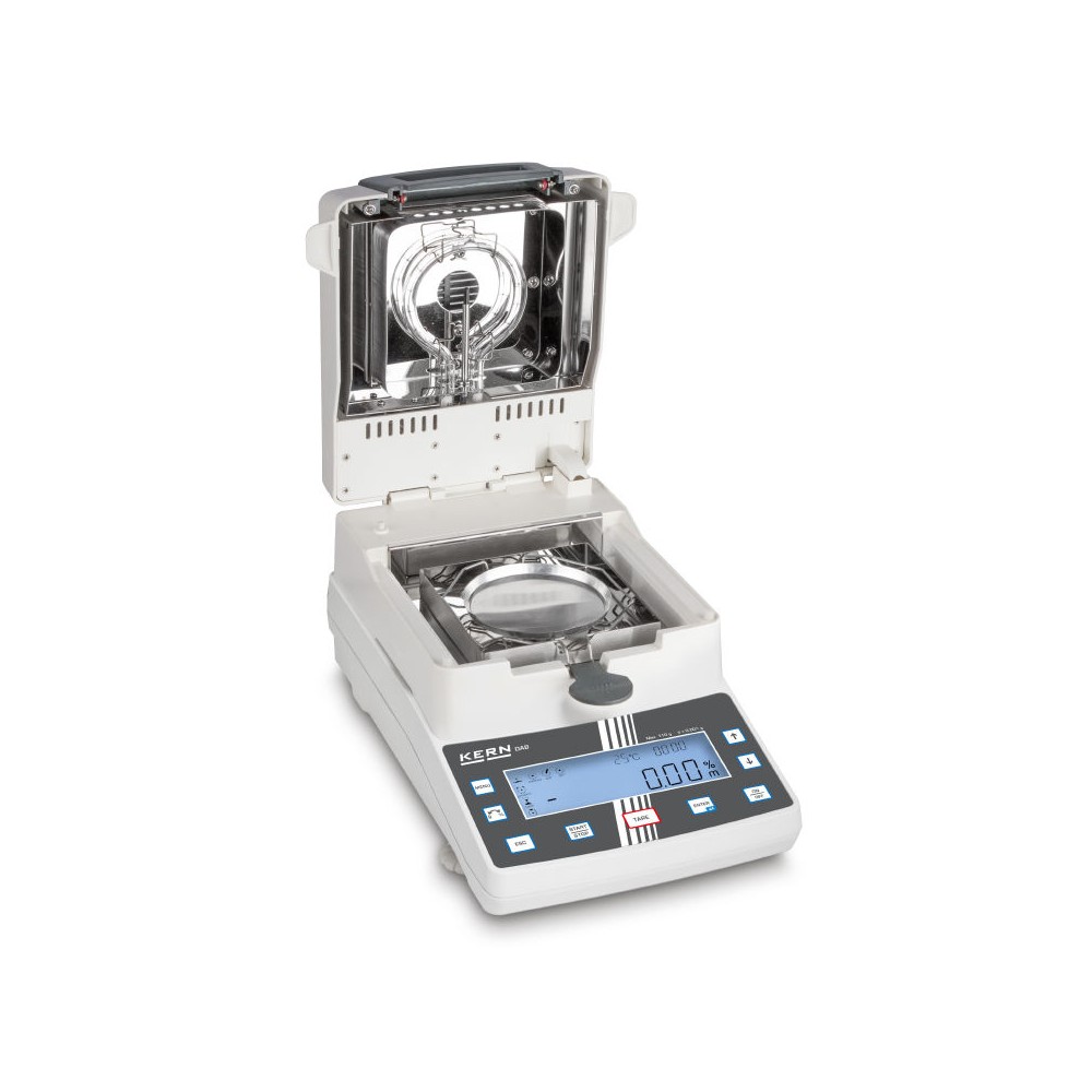 KERN DAB 200-2IR to nowoczesny analizator wilgotności z promiennikiem podczerwieni, stworzony do pracy w laboratoriach analitycznych, przemyśle spożywczym, rolnictwie, energetyce i gospodarce wodnej. Dzięki szybkiemu osiąganiu kryterium wyłączenia oraz pamięci procesów, urządzenie pozwala na efektywną analizę wilgotności próbek w krótkim czasie.