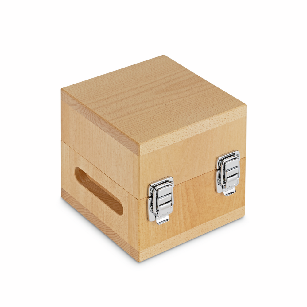 Wooden box 337‑131‑200 to profesjonalne, solidne i estetyczne pudełko wykonane z naturalnego drewna bukowego, zaprojektowane specjalnie do przechowywania pojedynczego odważnika kontrolnego o masie 5 kg. Dzięki precyzyjnie wyprofilowanemu wnętrzu, odważnik jest stabilnie osadzony, co minimalizuje ryzyko przesunięć i uszkodzeń podczas transportu lub przechowywania.